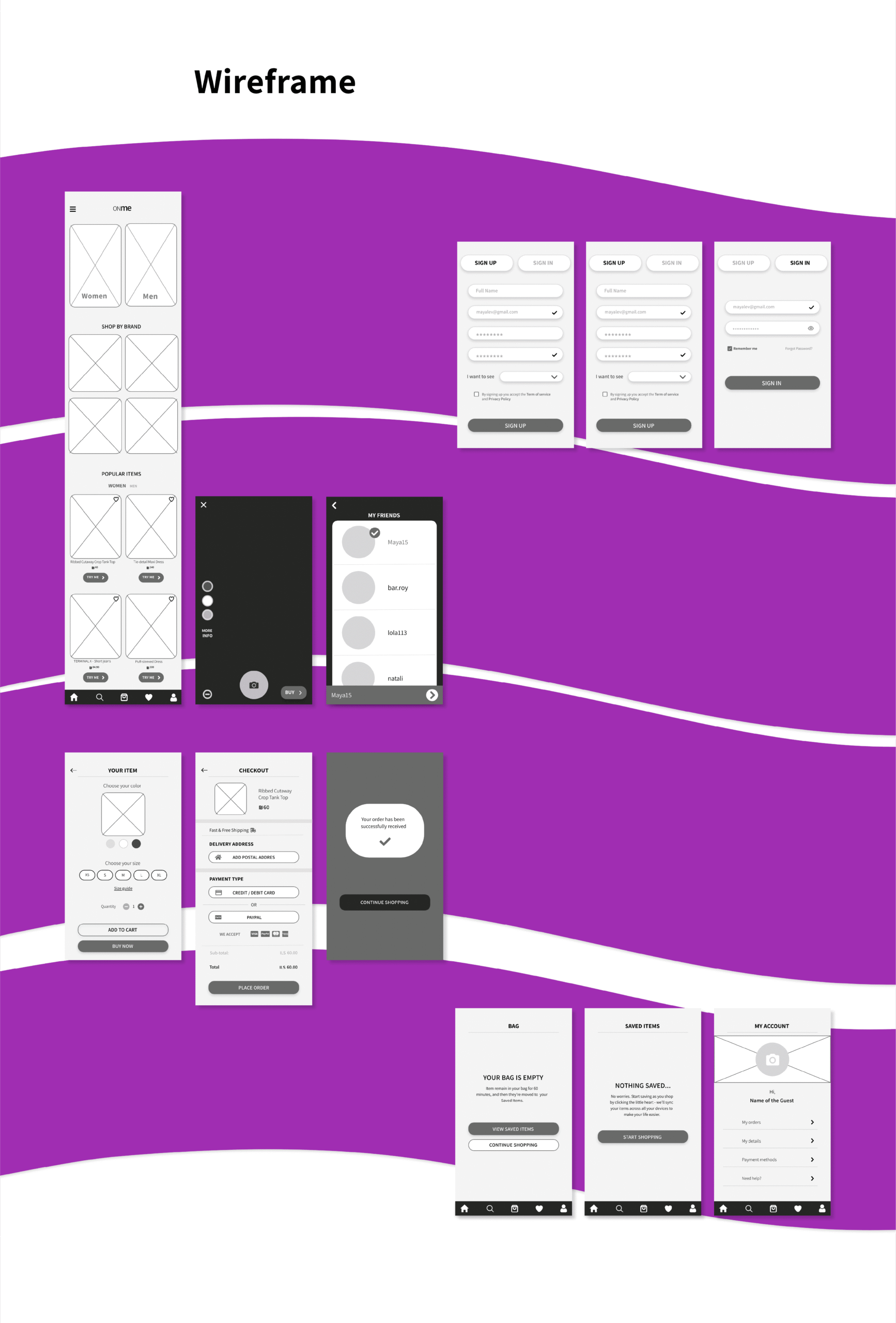 אפליקציה שנועדה להקל על חוויית קניית בגדים אונליין. באפליקציה ניתן לראות כיצד הבגד נראה עליכם, לבחון צבעים שונים ולבחור את הפריטים המושלמים עבורכם, מבלי לצאת מהבית. הפרויקט כולל תהליך UX/UI מקיף, עם דגש על מחקר ועיצוב חוויית משתמש.